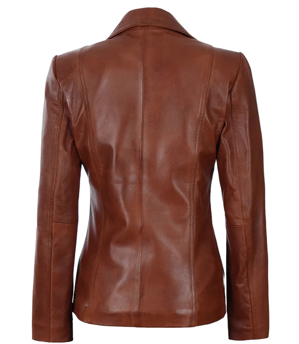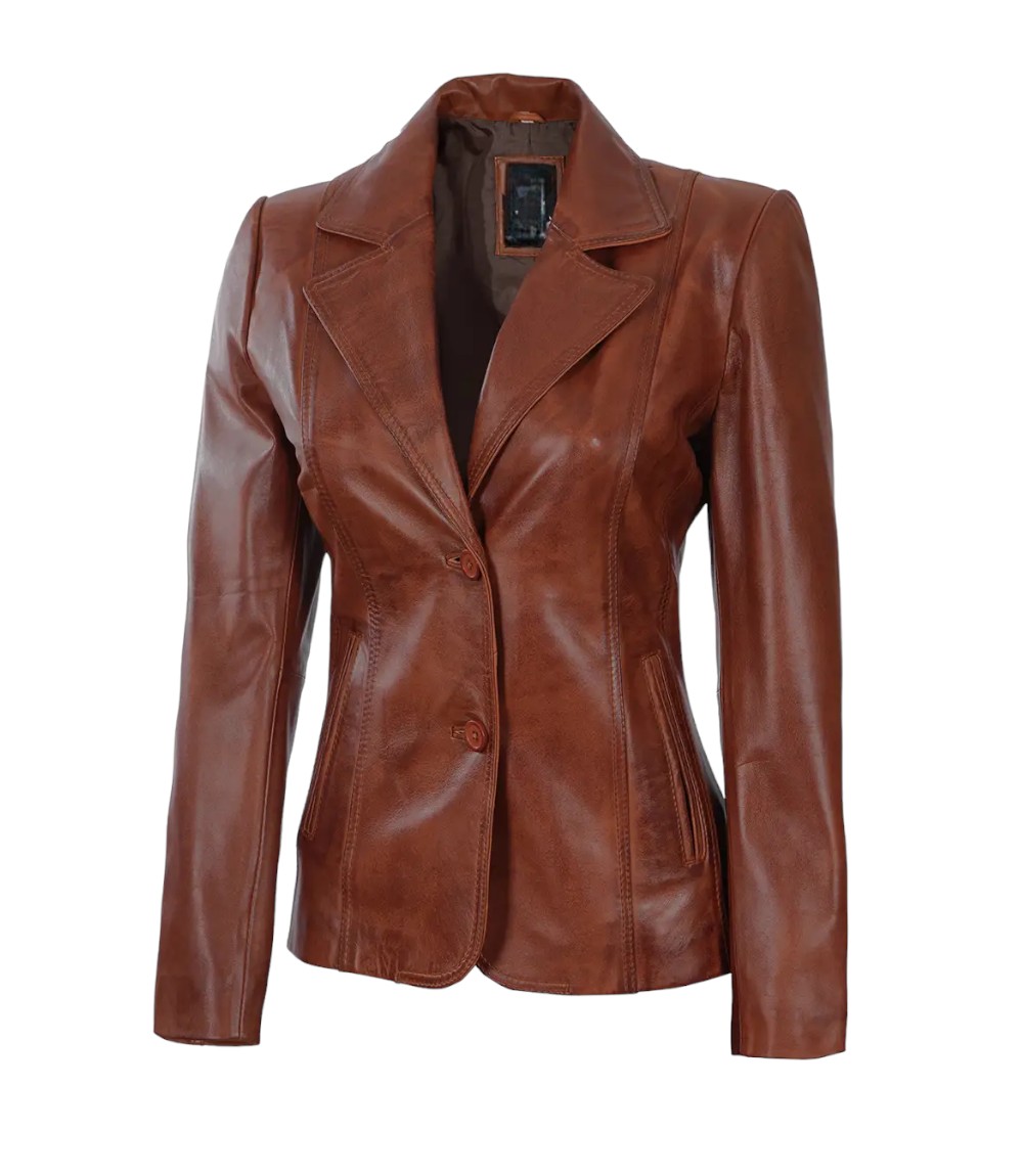 100% Real leather and comes with two button style; other features include one chest pocket, two waist flap pockets and decorative seam patterns on the edges.